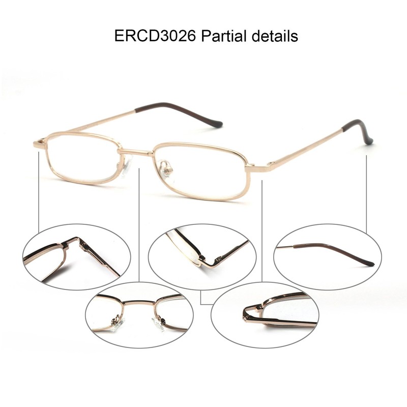 - EYE ZOOM unisex slim portable reading glasses. Classic-shaped frames, look good on any face. Spring-hinged temples, help glasses fit your face. Super lightweight pocket clip aluminum case. It is easy to travel and carry.