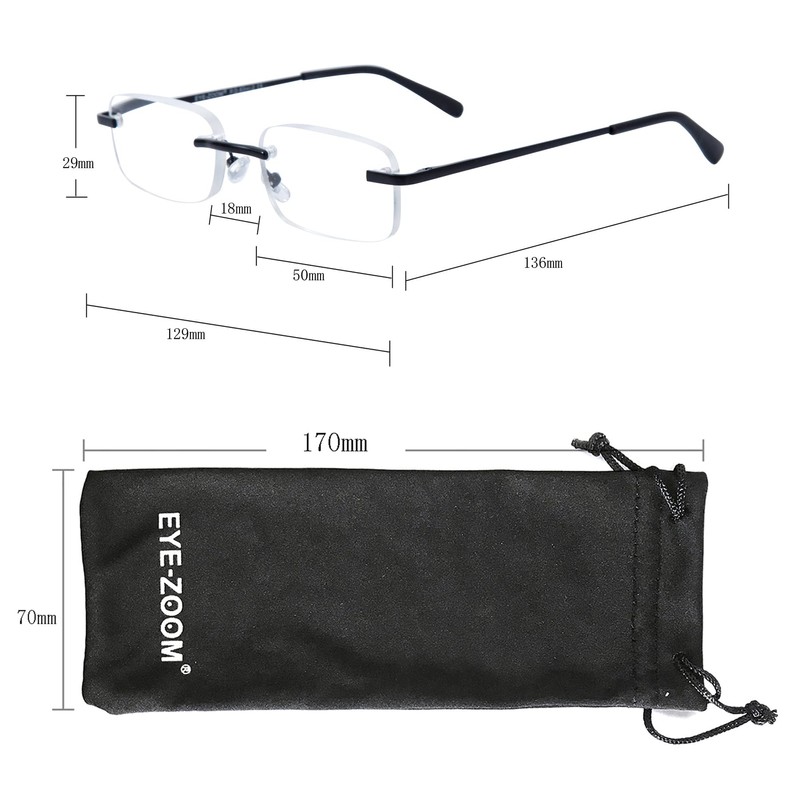 - Product includes the 3 pairs of EYE ZOOM Reading Glasses & 3 pairs of soft pouch. Soft cloth bags can be used to clean the lenses.