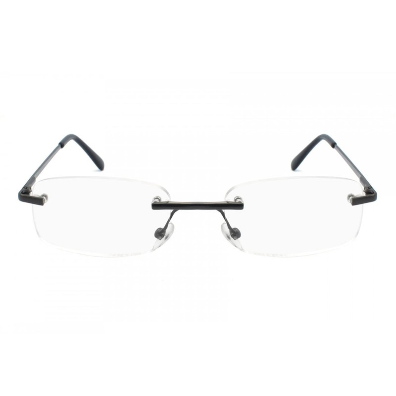 EYE ZOOM 3 Pack Classic Rectangluar Metal Frame Rimless Reading Glasses for Men and Women (Black, Gunmetal and Silver, +1.50)