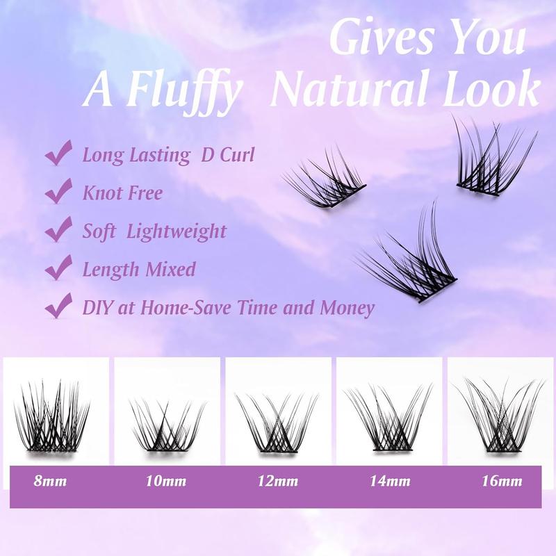 Eyeash Clusters DIY Lash Extensions, 100PCS Natural Individual Lashes Wispy, D Curl Clusters Eyelash Extensions (D14, 8-16mm) Makeup Cosmetic - 100 CLUSTERS: D08