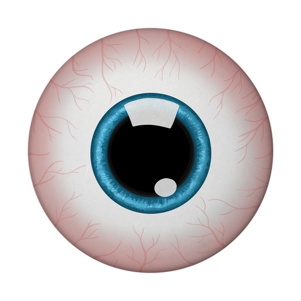 - An eyeball is depicted on the round magnet. The magnet can be attached to the fridge or other metal surface.