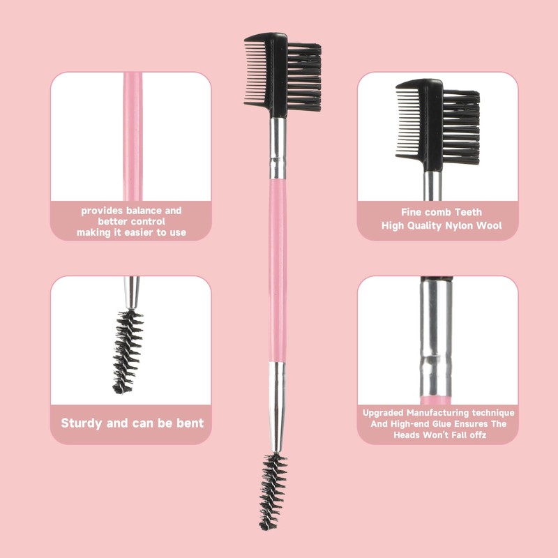 - Double Head Design:Double side eyebrow comb will help you evenly to separate eyebrow, keep your eyebrow tidy and clean.Double side eyebrow brush one side, the dual-ended spiral brush has one end that gives your lashes a curlier look, and one end that's great for eyeliner