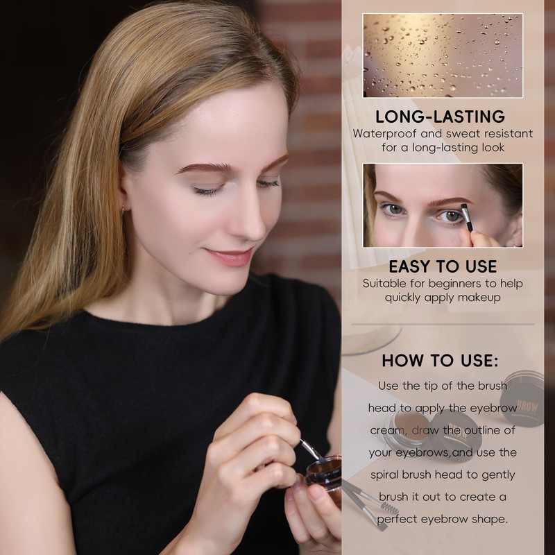 - Waterproof and Long-lasting: Utilizing a professional waterproof formula, our eyebrow cream ensures that your makeup remains smudge-free, even against water and sweat. Rain and perspiration will no longer be a concern as it effortlessly maintains your stunning eye makeup throughout the day.