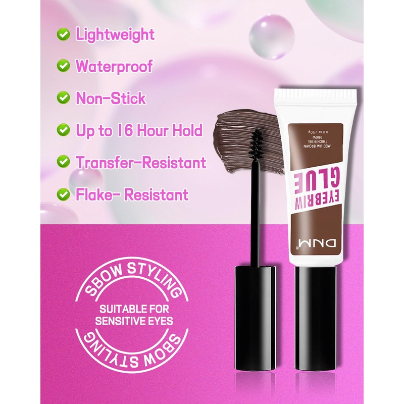• Transparent Eye Brow Glue - This non sticky and transparent Eyebrow Setting Gel is great for wearing as a base under tinted brow gel or eyebrow pencils, and creates a healthy, defined look. Our clear brow gel with up to 16 hours of extreme hold is transfer-proof, quick-drying with a natural finish, allowing you to style brow hairs and hold them in place for limitless looks.
