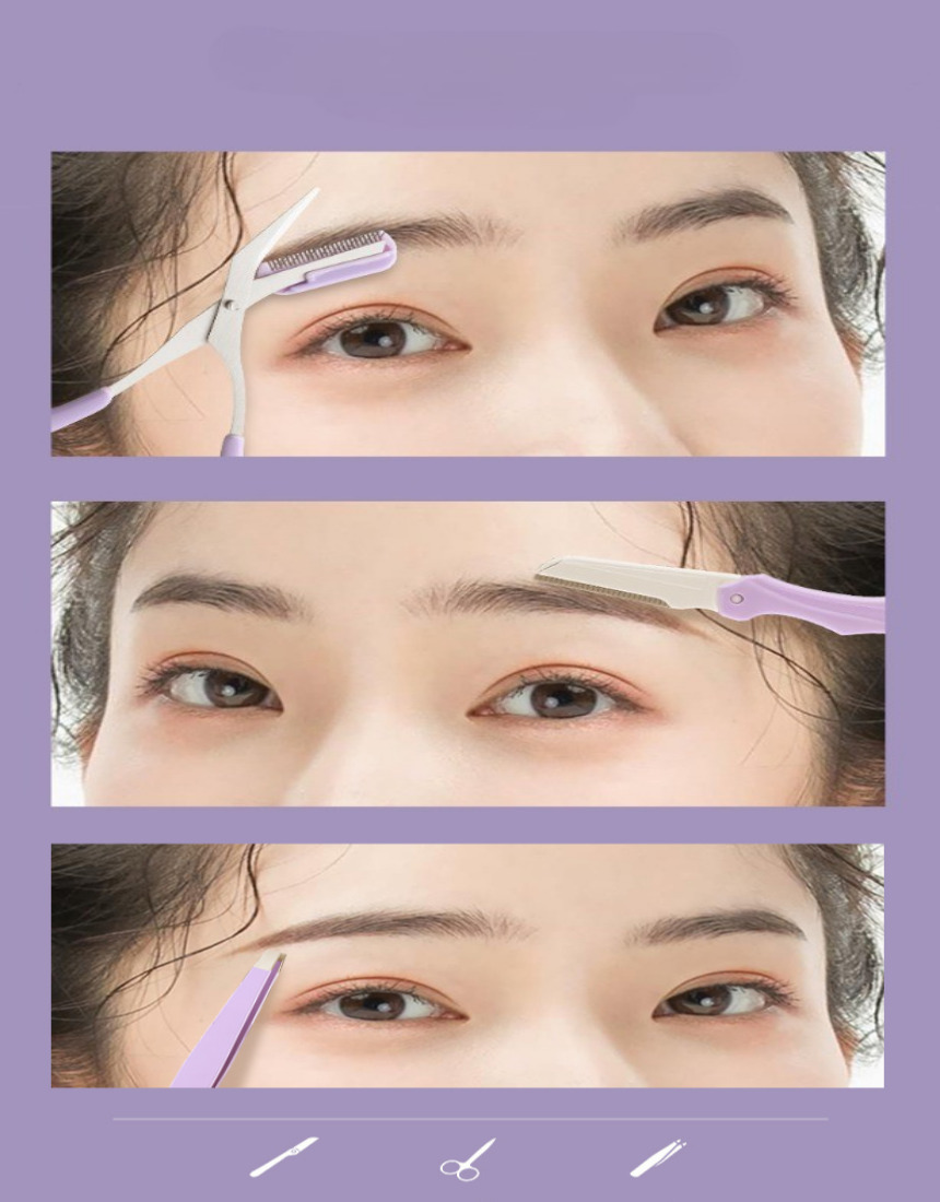 Eyebrow Grooming Easy Trimming 3-Piece Set Set Purple 3ea
