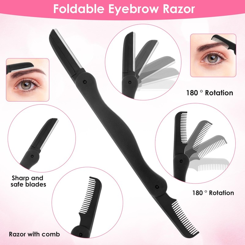 Product size: Double-head eyebrow razor: 10cm (3.9 inches), single-head eyebrow razor: 10.5cm (4.1 inches), eyebrow brush 10cm (3.9 inches), eyebrow clip 10cm (3.9 inches), scissors 9.5cm (3.7 inches)