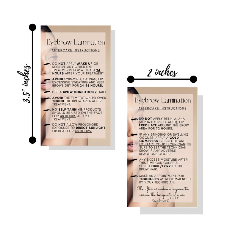 - Eyebrow lamination aftercare instructions printed on front and back!