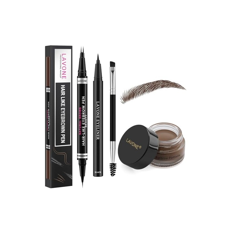 - Eyebrow Pen Kit, with 2 Tip Waterproof Microblading Eyebrow Pencil, Eyebrow Pomade, Eyeliner and Dual-ended Eyebrow Brush - 07 Dark Brown