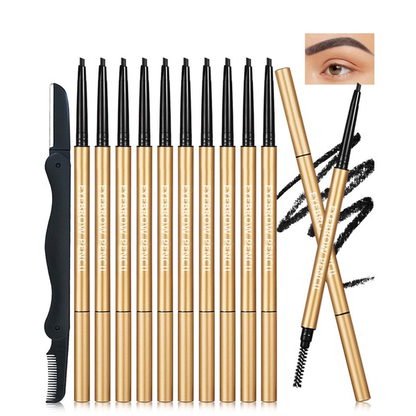 Eyebrow Pencil-12Pcs Black Retractable Eye Brow Pencil,Dual-Sided Brow Brush,Long-Lasting Waterproof,Ultra-Fine Eyebrow Pen for Define Shape and Fill Brows,Create Natural Eye Brow Makeup for Women-01