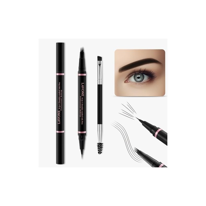 - Eyebrow Pencil,2-in-1 Waterproof Eyebrow Pen with 4 Tip Brow Pen and Ultra-Precise Brow Pencil,with Dual-ended Eyebrow Brush,Eyebrow Makeup for Natural Looking Eyebrows - Ebony