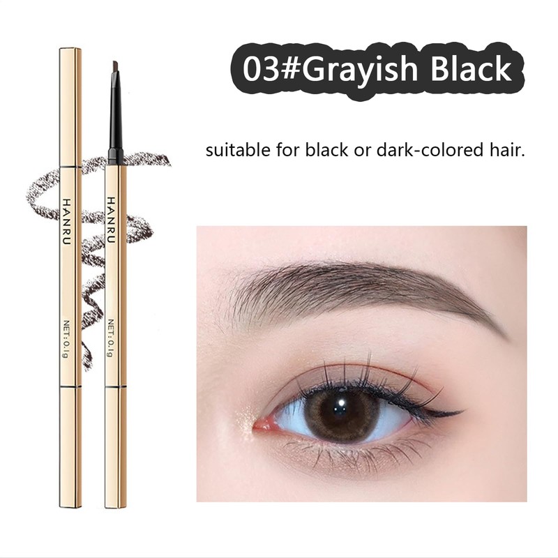 Eyebrow Pencil, 2 PCS Eyebrow Pen, Waterproof Eye Brow Tint Double Ended Brow Pencil with Spoolie Brush, Fine Tip, Eyebrows Dye, Natural, Long-lasting, Precise Brow Makeup, Grayish Black #03