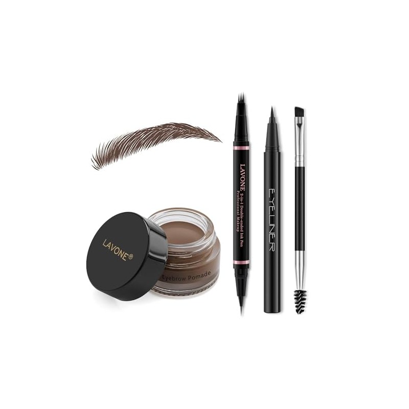 - Eyebrow Pencil Brow Set, with 2 in 1 Waterproof Microblading Eyebrow Pen, Eyebrow Pomade, Eyeliner and Dual-ended Eyebrow Brush, Brow Pencil Kit for Natural Eyebrows - 12 Dark Brown