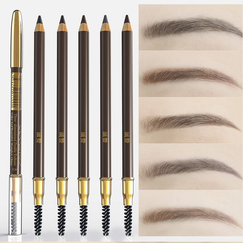 Eyebrow Pencil Longlasting Waterproof Durable Automaric Liner Eyebrow 5 Colors to Choose (5pcs, 2# Dark Brown)