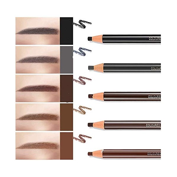 Eyebrow Pencil Professional Pencil Set, Brown, Dark Brown, Light Brown, Black, Grey, Removable, Waterproof (Pack of 5)