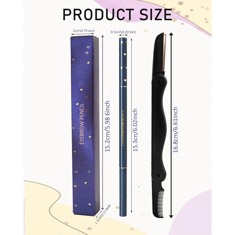 Packing Include: 12Pcs Eyebrow Pencil and 1Pcs brow razor