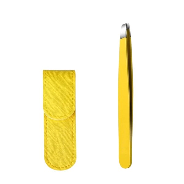 Eyebrow Tweezers | Slant Precision Tweezer | Surgical Grade Hand Filed Slanted Tips for Professional Use, Best Precision Engineered Tweezer For Flawless Beauty Results (Yellow, One size)
