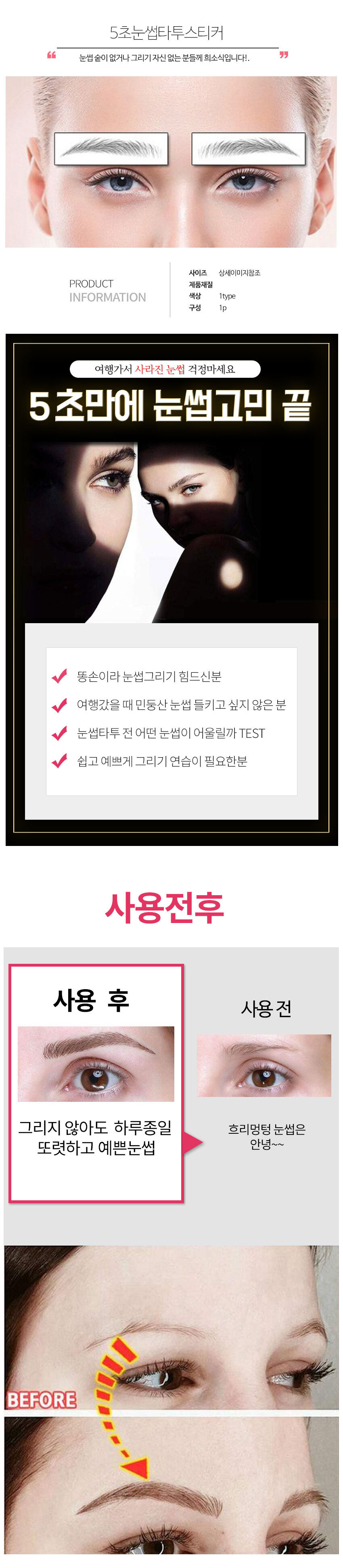 Eyebrows with emergency eyebrow tattoo stickers - E14 / 비상용 눈썹 문신 스티커 붙이는 눈썹 - E14