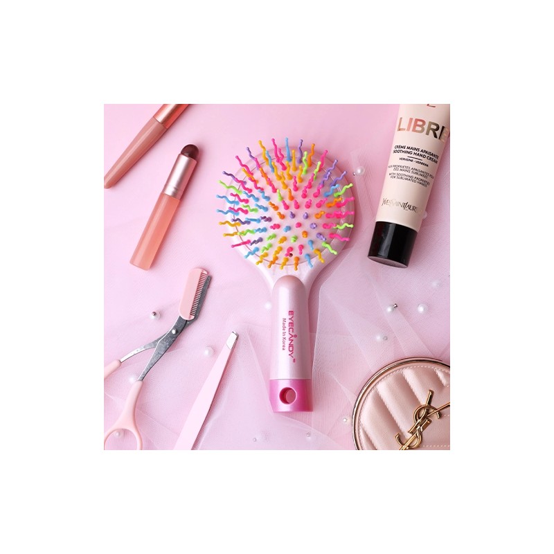 • The EYECANDY Hairbrush is a product that harmonizes the functional effects of the patented Korean rainbow S-shaped teeth design with the practical and aesthetic effects of the overall design of the actual brush.