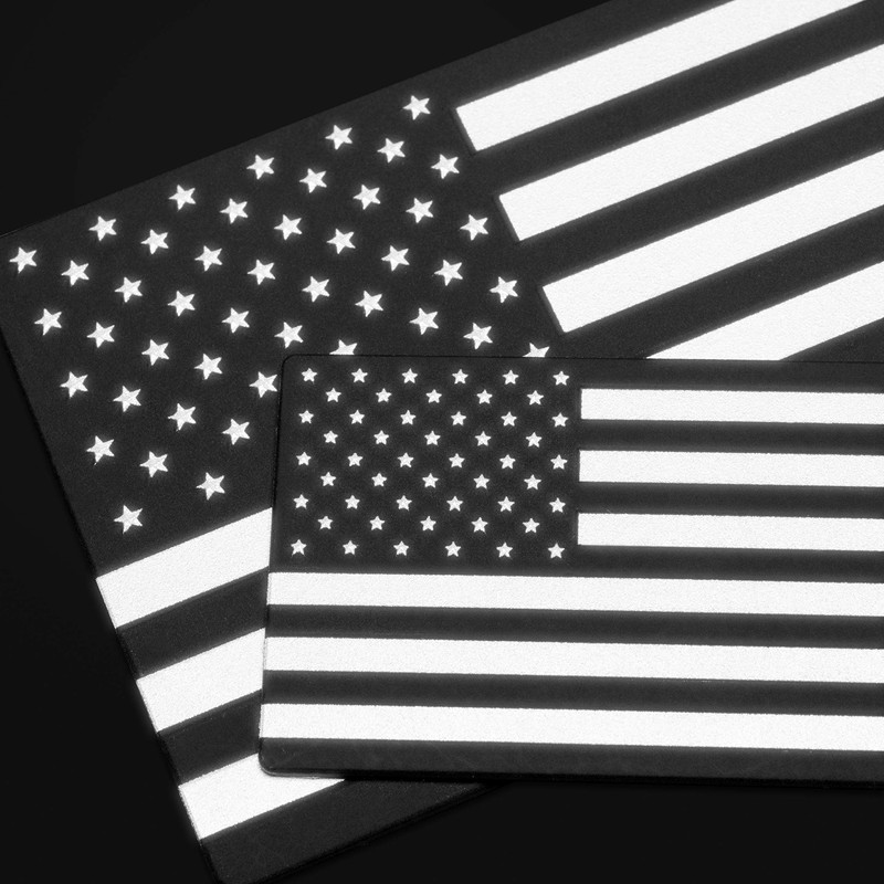- Each Order Includes 2 Large Reflective Flag Badges 5.08”x2.90” (One USA Regular Orientation and One USA Reverse Orientation) AND 2 Small Reflective Flag Badges 2.91”x1.65” (One USA Regular Orientation and One USA Reverse Orientation)