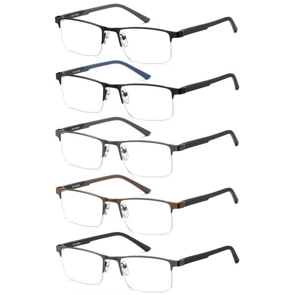 EYECEDAR 5 Pack Premium Blue Light Blocking Reading Glasses Men Metal Half Frame Spring Hinges Computer Readers for Men and Women 2.25