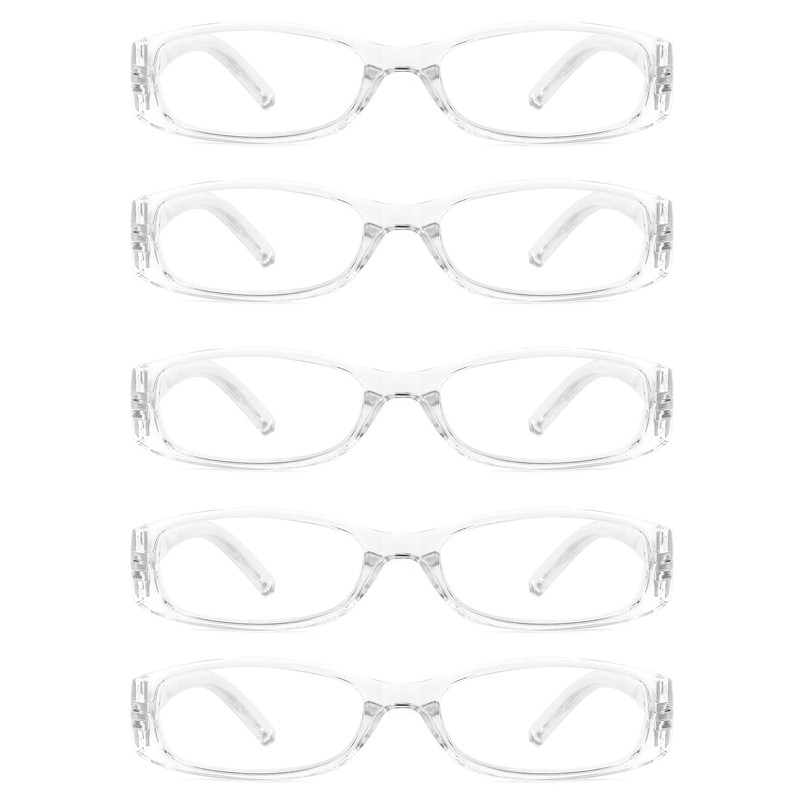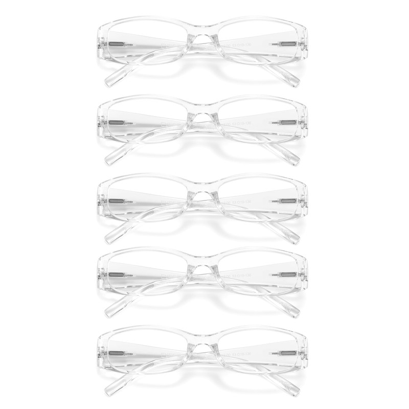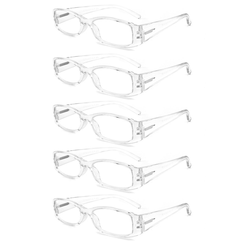 eyeezi 5 Pack Blue Light Blocking Reading Glasses for Women Men, Retro Stylish Spring Hinge UV400 Computer Rectangle Readers 0.0 (5 Pack Transparent)