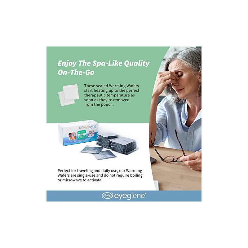 - THE EASIEST TO USE: Just tear open a pouch and insert these wafers into the EyeGiene Compress. The wafers will heat themselves to the perfect temperature. These wafers are designed to deliver 30-45 minutes of heat rejuvenating the eyes.