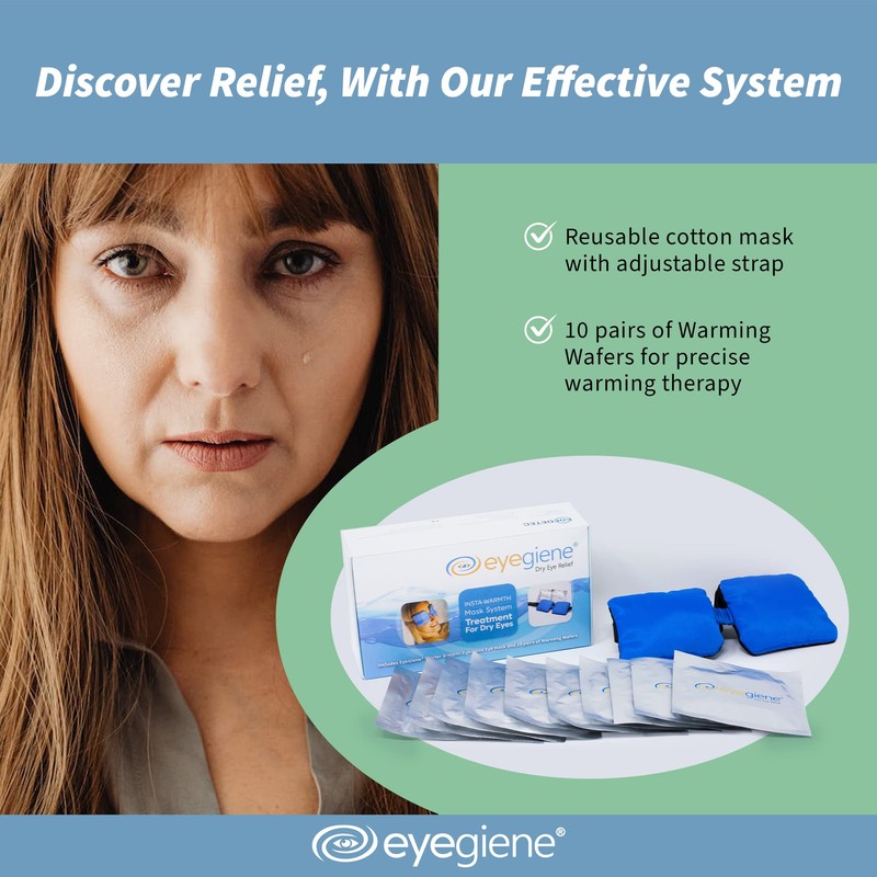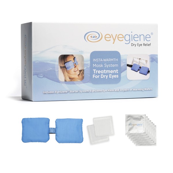 EyeGiene Warm Eye Compress - Water Free, No Microwave, Warming System - Includes Reusable Eye Mask and 10 Single-use Pairs of Warming Wafers - Heated Compression for Dry Eyes, Styes, Blepharitis, and More