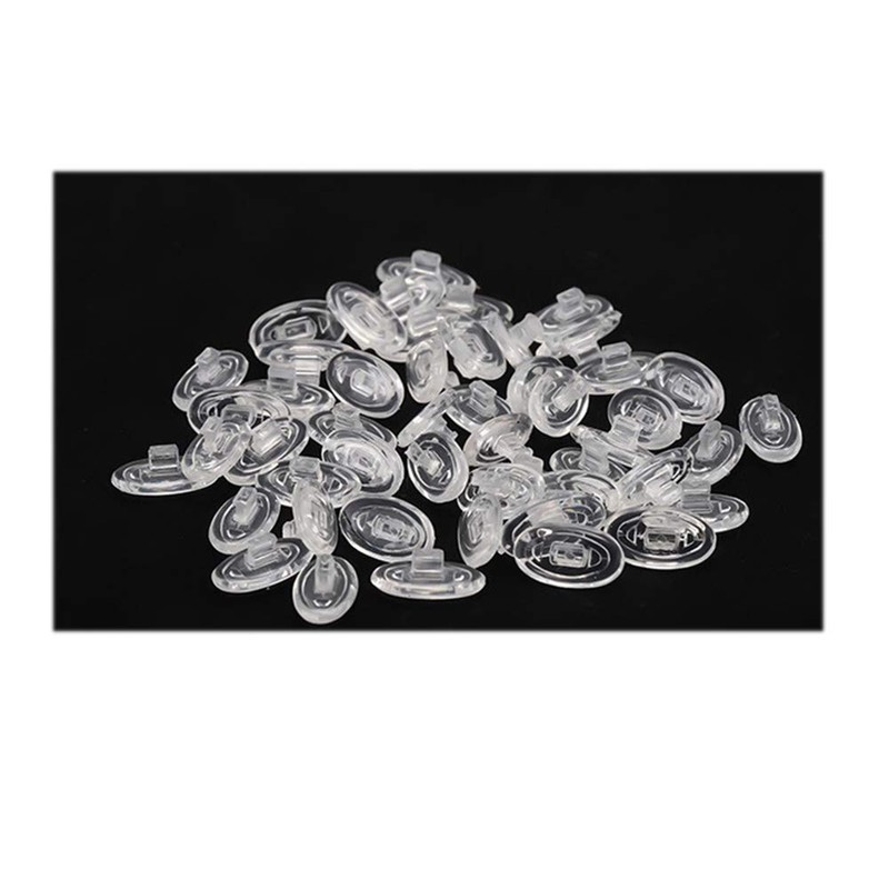 - SHAPE and MATERIAL: Oval Shaped Silicone Nose Pads. Nose pad material is Silicone, Push-in part is hard plastic, it is not easy to fall out from eyeglass.