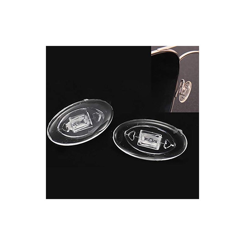 - SHAPE and MATERIAL: Oval Shaped Silicone Nose Pads. Nose pad material is Silicone, Push-in part is hard plastic, it is not easy to fall out from eyeglass.