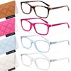 - [Spring hinge and Unisex designed shape]-The unisex design eyeglasses for reading with flexible hinge that provides just the right fit for both women and men. The spring hinges allow you to quickly wear and take off the glasses along with being durable enough to handle daily use.