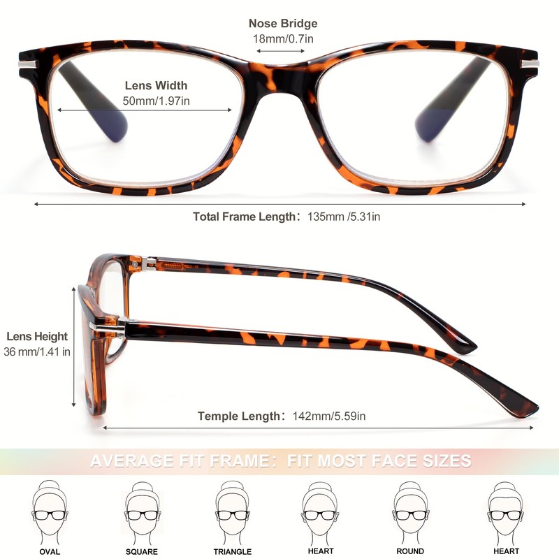 - [Size Information]Lens Width: 50mm( 1.97 inches) | Lens Height: 36 mm( 1.41 inches) | Temple Length: 142mm( 5.59 inches) | Nose Bridge: 18mm( 0.7 inches) | Total Frame Length:135mm (5.31inches).