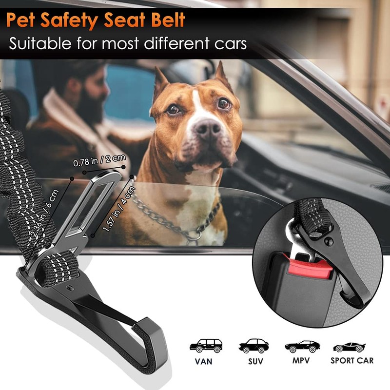 - UNIVERSAL COMPATIBILITY -- Designed to be compatible with most vehicles. For your pet's safety, please do not attach the seat belt to your pet's collar directly. It is recommended to use the seat belt leash with pet harness than pet collar.