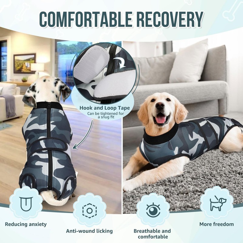 - Zipper and Magic Tape Design for Easy Wear --- The design of the post-operative dog recovery suit with a zipper and buttocks magic tape makes it easy to put on and take off, which can save you time and energy. Suitable for Golden Retriever, Labrador, Bulldog, Cocker Spaniel, Teddy, Schnauzer, Pug, etc.