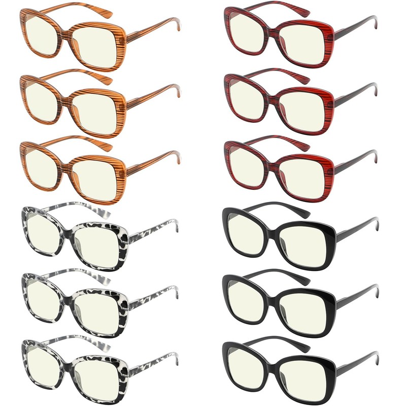 - 12 Pairs Computer Readers: Convenient Set of 12 blue light blocking reading glasses. You can have a pair handy wherever you are. Easily keep a pair in the bedroom or living room and all of your favorite reading spots.