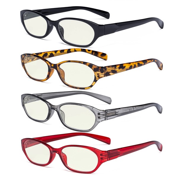 Eyekepper 4 Pack Computer Reading Glasses Women - Spring Hinge Ladies Blue Light Blocking Readers Yellow Tinted +1.25