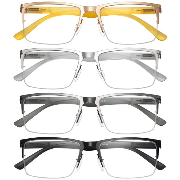 Eyekepper 4-pack Half-Rim Reading Glasses Lightweight Metal Rectangle Reader for Men +2.0