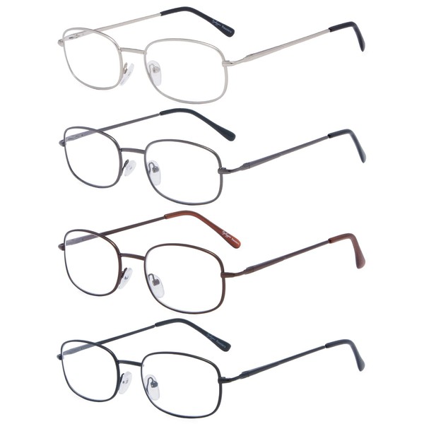 Eyekepper 4 Pairs Reading Glasses Metal Frame +2.25 Reader Eyeglasses with Spring Hinges for Men Women Reading