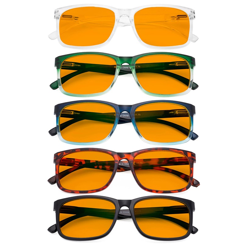 Eyekepper 5 Pack Blue Light Blocking Reading Glasses Square Computer Readers Orange Tinted +2.25