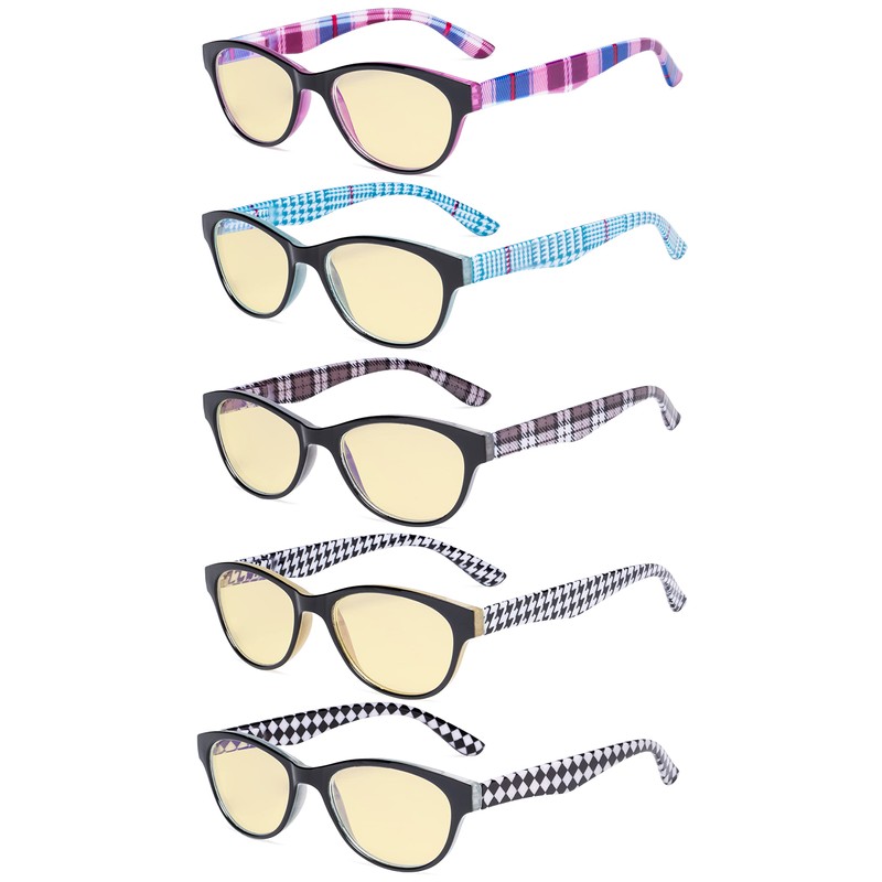 Eyekepper 5 Pack Computer Reading Glasses Cat Eye Blue Light Blocking Readers Yellow Tinted +3.00