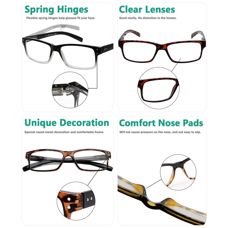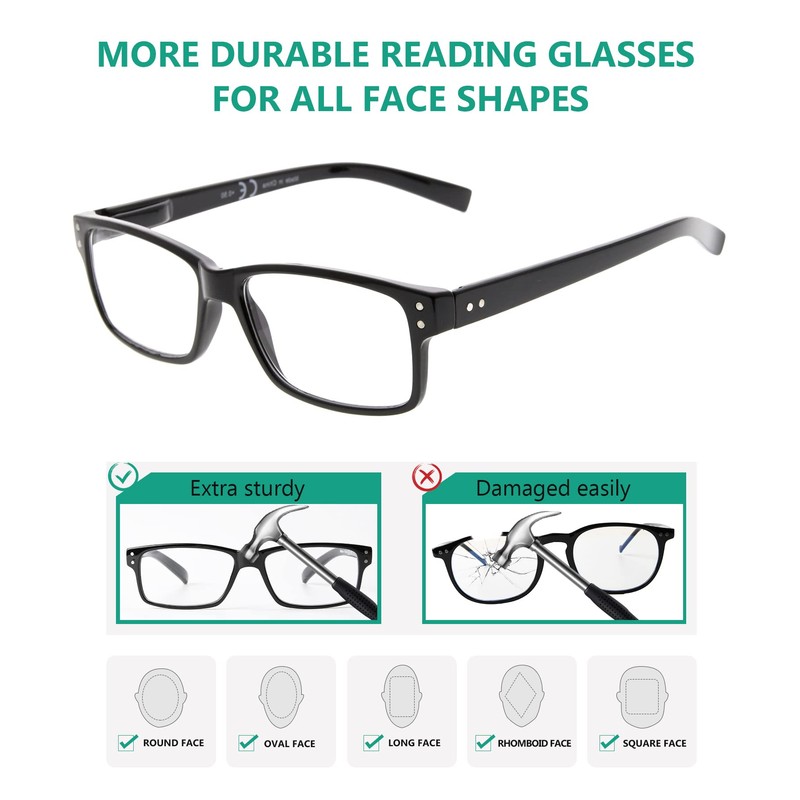 - 5 PACK READERS FOR MEN - Very cool classic look. The 5 pack means you can scatter them around (home, car, office, etc.) so you never have one of those "can't find the glasses" moments.