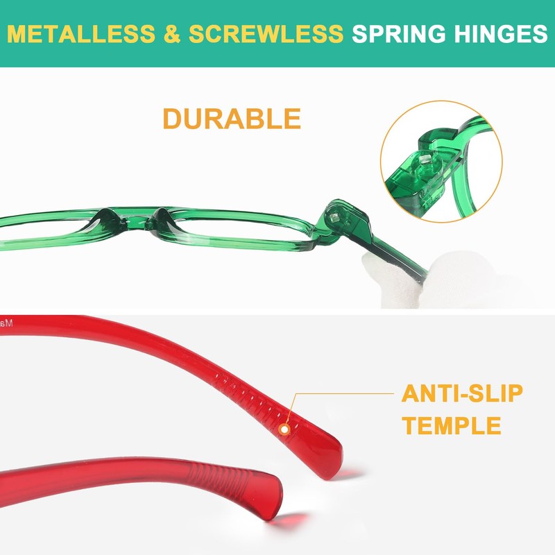 • [Anti-Slip Temple]: These unreakable magnifying glasses feature anti-slip patterns on the temples. If you've been troubled by glasses slipping down your nose, these cheaters will solve your problem.