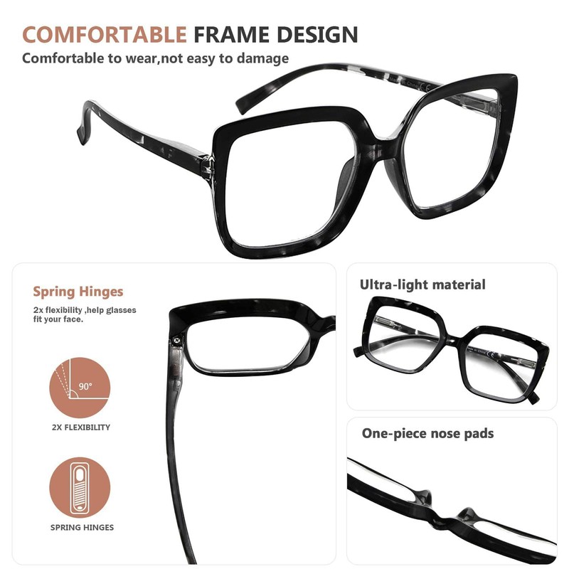 - ▲ This Large Frame reading glasses use A-class CLEAR LENS/SCRATCH lenses which have higher precision as well, scratch-resistant coating technology improves visual clarity and keeps lenses clear optimal viewing.