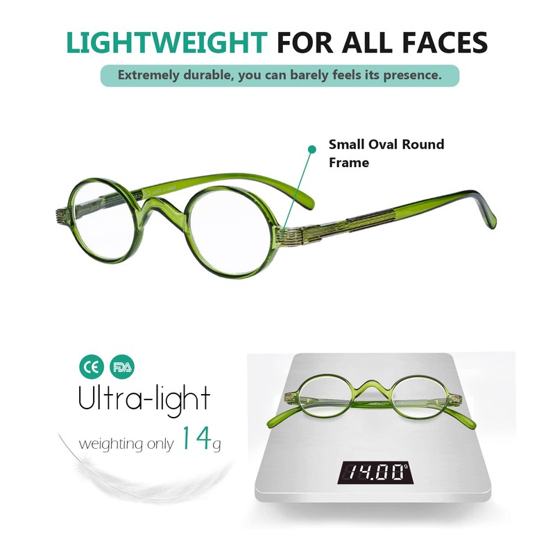 Eyekepper Small Oval Round Reading Glasses Vintage Mini Reader Eyeglasses for Men Women Reading with Spring Hinges Green Frame +2.75