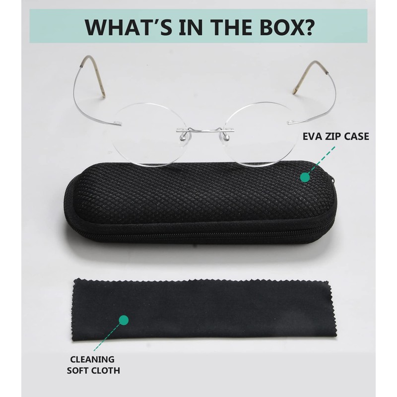 Eyekepper Titanium Rimless Round Circle Eyeglasses Silver,+0.00