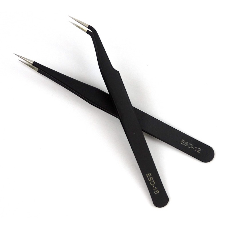 - Eyelash Extension 1-set of ESD Black Straight & Curved Tweezers