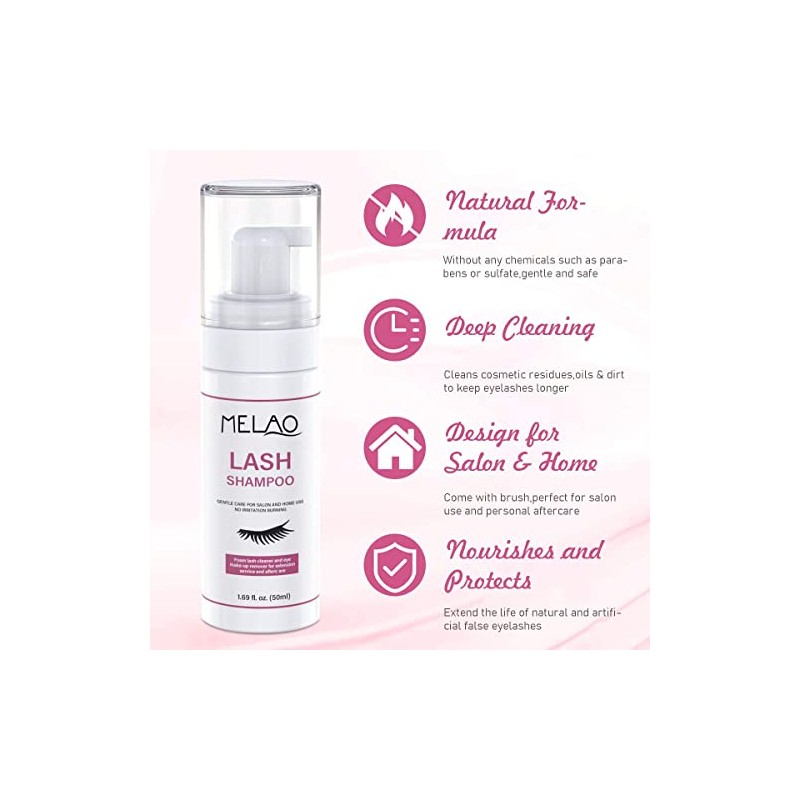 MELAO Eyelash Extension Cleanser How Do I Clean Eyelash Extensions? If you’re looking for the best way to clean eyelash extensions then keep following along. Clean lash extensions lead to an increase in the overall longevity of your expensive and time-consuming semi-permanent eyelash extensions, and it reduces the risk of infection, itchy eyelids, and other irritations. You should be cleaning your eyelash extensions every other day at least, but every day is even more preferable. Dirt, oil, debris, dead skill cells, and other leftovers can build up at your lash line, which may not even be visible to the naked eye without the help of a magnifying glass. **◎Applicable people:** sensitive skin available **◎Specifications:** 1.7fl.oz/50ml Lash Wash **◎Shelf life:** 24-Months **Directions:** ◎Shake cleanser for eyelash extensions well each time before dispensing. ◎Dispense 1-2 pumps onto the head of the brush. Gently pat cleanser evenly along the lash line. ◎Rinse eyes thoroughly with water to remove any excess residue from your lash extensions. **Warm Note:** ◎For external use in the eye area only. ◎Don’t use on extensions earlier than 24 hrs after the service ◎Don’t rub or pull extensions ◎Don’t use on broken skin ◎In case of personal sensitivity rinse with water and discontinue use ◎Keep out of reach of children