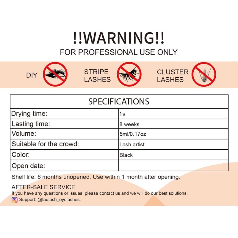 Attention: Careful Attention: This lash extension glue is designed for Salon Use Only. Please Never use it for yourself with clusters or strip lashes! Please Read the product description carefully, using this product with a Professional lash artist. In case of accidental contact with eyes, please wash with water and seek medical treatment in time