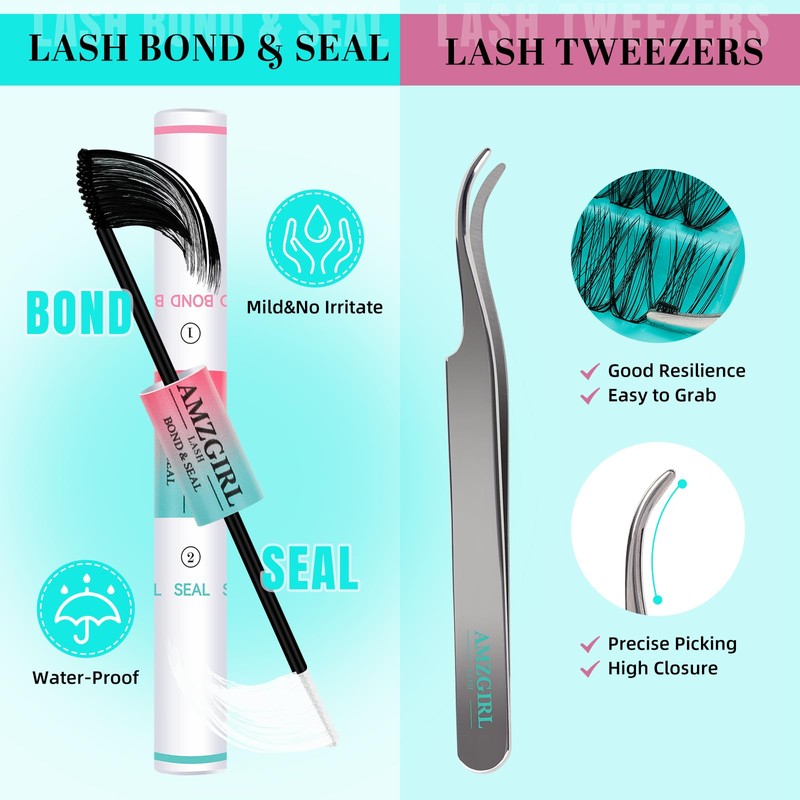- Lash bond and seal and tweezers: eyelash bond and seal with double-end tube design, eyelash glue with a spiral mascara brush head, which helps glue more evenly. Lash seal can help create a protective layer on the grafted eyelashes. Waterproof and sweat-proof, eyelash extension stick on your eyelashes for 2-3 days. Lash tweezers close well, they give a good hold for the eyelash clusters, the she in the perfect place.