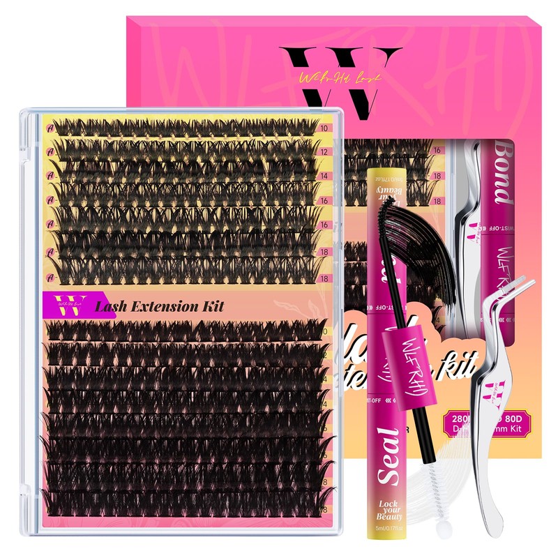 - DIY Eyelash Extension Kit The eyelash extension kit includes 300 mixed 60D 80D 10-18mm eyelash clusters*, 1 eyelash glue and sealer and 1 eyelash applicator. Includes all the tools you need from carrying to removal. Easily achieve luxurious eyelash tufting effects.