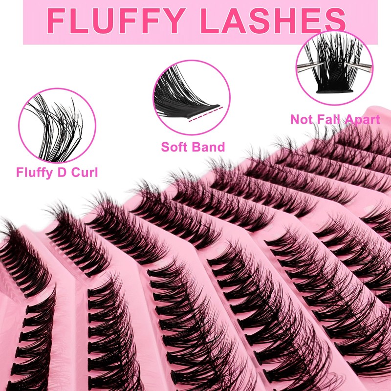 • SUPER LIGHTWEIGHT & SOFT MATERIAL Premium material for large eyelash cluster extension. We use fluffy and volume silk mink material, eyelashes fur marked matte look as human eyelashes, durable and lightweight. Bring salon extension look and comfortable experience.